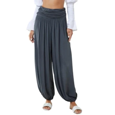 STAR FASHION Womens Italian Hareem Trouser Ladies Full Length Plain Baggy Harem Ali Baba Pants Jersey Waistband Casual Wear Charcoal 12 14
