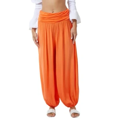 STAR FASHION Womens Italian Hareem Trouser Ladies Full Length Plain Baggy Harem Ali Baba Pants Jersey Waistband Casual Wear Orange 12 14