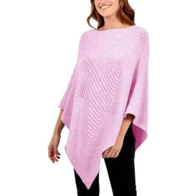 Star FASHION Womens Italian Knitted Lagenlook Poncho Top New Ladies Pattern Ribbed Asymmetric Hem Cape Shawl Soft Sweater One Size Baby Pink