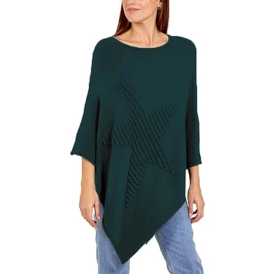 Star FASHION Womens Italian Knitted Lagenlook Poncho Top New Ladies Pattern Ribbed Asymmetric Hem Cape Shawl Soft Sweater One Size Bottle Green