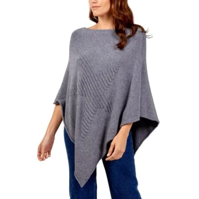 Star FASHION Womens Italian Knitted Lagenlook Poncho Top New Ladies Pattern Ribbed Asymmetric Hem Cape Shawl Soft Sweater One Size Dark Grey