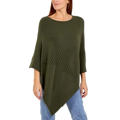 Star FASHION Womens Italian Knitted Lagenlook Poncho Top New Ladies Pattern Ribbed Asymmetric Hem Cape Shawl Soft Sweater One Size Forest Green