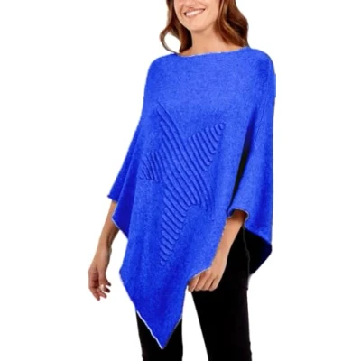 Star FASHION Womens Italian Knitted Lagenlook Poncho Top New Ladies Pattern Ribbed Asymmetric Hem Cape Shawl Soft Sweater One Size Royal