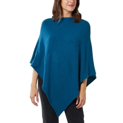 Star FASHION Womens Italian Knitted Lagenlook Poncho Top New Ladies Pattern Ribbed Asymmetric Hem Cape Shawl Soft Sweater One Size Teal