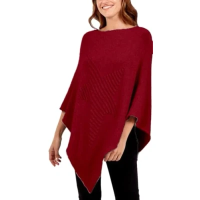 Star FASHION Womens Italian Knitted Lagenlook Poncho Top New Ladies Pattern Ribbed Asymmetric Hem Cape Shawl Soft Sweater One Size Wine