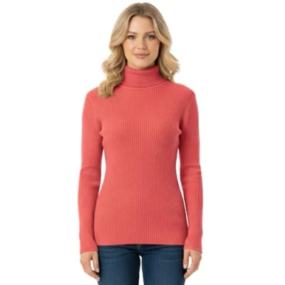 STAR FASHION Womens Knitted Polo Neck Ribbed Jumper Long Sleeve Cardigan Ladies High Roll Sweatshirts Warm Winter Tops Coral 8 10