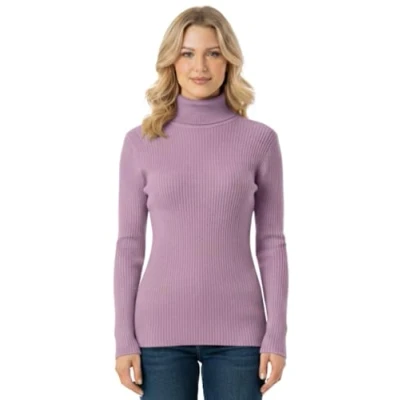 STAR FASHION Womens Knitted Polo Neck Ribbed Jumper Long Sleeve Cardigan Ladies High Roll Sweatshirts Warm Winter Tops Lilac 8 10