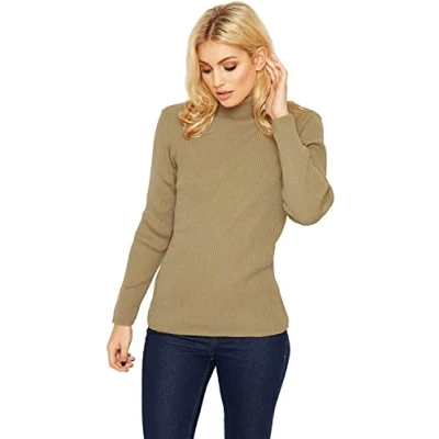 STAR FASHION Womens Knitted Polo Neck Ribbed Jumper Long Sleeve Cardigan Ladies High Roll Sweatshirts Warm Winter Tops Mocha 8 10