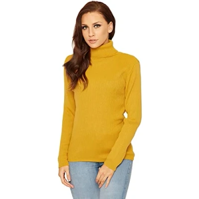 STAR FASHION Womens Knitted Polo Neck Ribbed Jumper Long Sleeve Cardigan Ladies High Roll Sweatshirts Warm Winter Tops Mustard 8 10