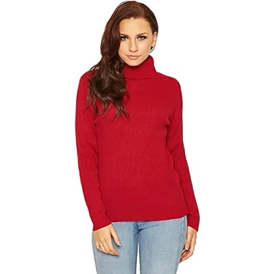 STAR FASHION Womens Knitted Polo Neck Ribbed Jumper Long Sleeve Cardigan Ladies High Roll Sweatshirts Warm Winter Tops Red 24 26