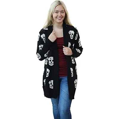 UNIQUE STYLE:- This Skull Cardigan Have a Simple and Casual Design With a Fashionable, Charming, Soft, and Cozy Experience. Wear With Simple Jeans and a Top For A Fashionable and Attractive Look. FEATURES:- Our Skull Printed Cardigan Comes With Regular Fit, Open Front, Long Sleeve, Solid Color, Skull Design, and Knitted Outwear, Which Make it Best For Casual Wear. MATERIAL:- Our Women's Cardigan is Made of 100% Acrylic Which is, Wrinkle Resistant, Soft and Durable. This Skull Cardigan Dry Quickly and Wick Moisture From The Skin Which Provides an Odor-Free Environment Throughout The Day. OCCASIONS:- This Ladies' Cardigan is Perfect For Multiple Occasions Like Every Day, Casual, Shopping, Work, etc. Due To Its Skull Design, It Becomes Great Fit For You If You Are Looking For Simple Halloween Top. AVAILABLE COLORS & SIZES:- The Modern Skull Printed Cardigan is Available in Four Sizes (UK 8-10,12-14, 16-18, 20-22) and Also Available in Six Different Beautiful Colors (Black, Stone, Wine, Charcoal, Turquoise, Purple)