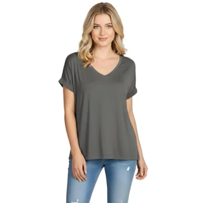 Oversized Fit: Relaxed, loose fit with stylish batwing sleeves. V Neck: Flattering V-neckline for a feminine, versatile touch. Turn-Up Sleeves: Fashionable roll-over short sleeves for a summer vibe. Soft & Light: Breathable, stretchy fabric; machine washable. Versatile: Easy to pair with jeans, shorts, or skirts for any occasion.