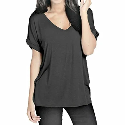 Oversized Fit: Relaxed, loose fit with stylish batwing sleeves. V Neck: Flattering V-neckline for a feminine, versatile touch. Turn-Up Sleeves: Fashionable roll-over short sleeves for a summer vibe. Soft & Light: Breathable, stretchy fabric; machine washable. Versatile: Easy to pair with jeans, shorts, or skirts for any occasion.