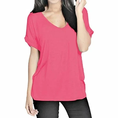 Oversized Fit: Relaxed, loose fit with stylish batwing sleeves. V Neck: Flattering V-neckline for a feminine, versatile touch. Turn-Up Sleeves: Fashionable roll-over short sleeves for a summer vibe. Soft & Light: Breathable, stretchy fabric; machine washable. Versatile: Easy to pair with jeans, shorts, or skirts for any occasion.