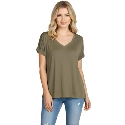 Oversized Fit: Relaxed, loose fit with stylish batwing sleeves. V Neck: Flattering V-neckline for a feminine, versatile touch. Turn-Up Sleeves: Fashionable roll-over short sleeves for a summer vibe. Soft & Light: Breathable, stretchy fabric; machine washable. Versatile: Easy to pair with jeans, shorts, or skirts for any occasion.