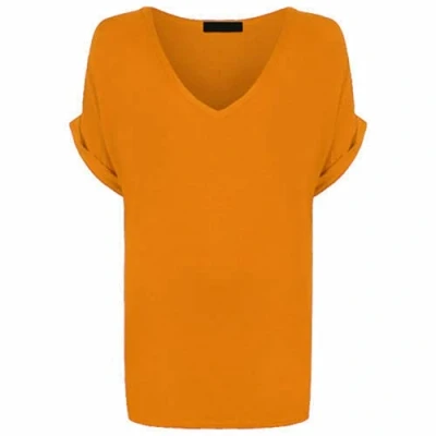 STAR FASHION Womens Ladies Baggy Batwing Sleeve T Shirt Oversized Loose Fit V Neck Turn Up Top Mustard 20 22