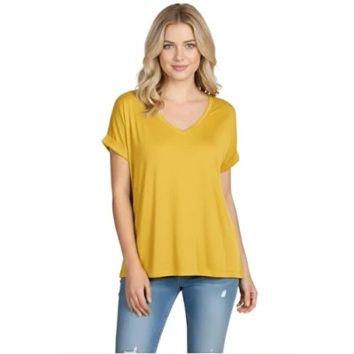 Oversized Fit: Relaxed, loose fit with stylish batwing sleeves. V Neck: Flattering V-neckline for a feminine, versatile touch. Turn-Up Sleeves: Fashionable roll-over short sleeves for a summer vibe. Soft & Light: Breathable, stretchy fabric; machine washable. Versatile: Easy to pair with jeans, shorts, or skirts for any occasion.