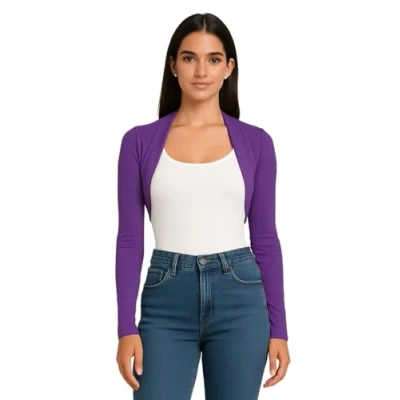 STAR FASHION Womens Long Sleeve Bolero Shrug Ladies Mini Blouse Open Front Cropped Top Lightweight Summer Cardigans Jacket Purple 20 22