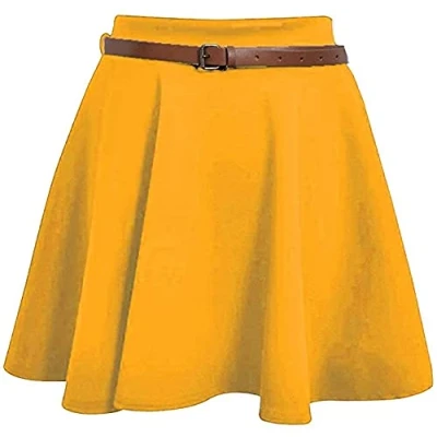 STAR FASHION Womens Plain/Check Tartan Print Belted Skirt Elasticated Waist Skirts Ladies Stretch Flippy Short Flared Mini Skater Size UK 8 26 Mustard