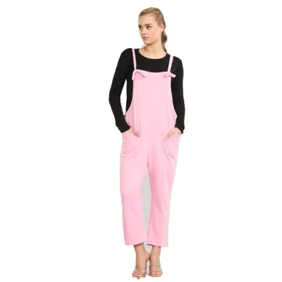 STAR FASHION Womens Plain Dungarees Jumpsuit Ladies Sleeveless Overalls Playsuit Loose Baggy Retro Italian Trouser Long Pants Small Baby Pink