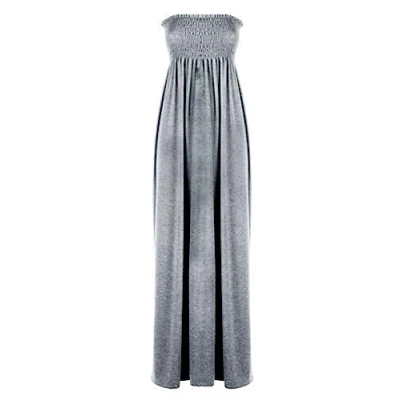 STAR FASHION Womens Plain Shirred Bandeau Long Maxi Dress Ladies Strapless Sleevless Ruched Boob Tube Summer Casual Wear Grey 12 14