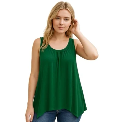 STAR FASHION Womens Plus Size Hanky Hem Ladies Sleeveless Scoop Neck Vest Top Bottle Green UK 24 26