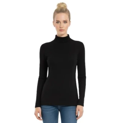 STAR FASHION Womens Polo Neck Jumper Tops Long Sleeve Ladies Roll Turtle Plain Knitted Pullover Sweatshirt for Stretch Lightweight Sweater Top Black 16 18