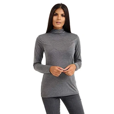 STAR FASHION Womens Polo Neck Jumper Tops Long Sleeve Ladies Roll Turtle Plain Knitted Pullover Sweatshirt for Stretch Lightweight Sweater Top Charcoal 24 26