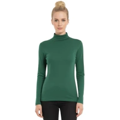 STAR FASHION Womens Polo Neck Jumper Tops Long Sleeve Ladies Roll Turtle Plain Knitted Pullover Sweatshirt for Stretch Lightweight Sweater Top Green 16 18