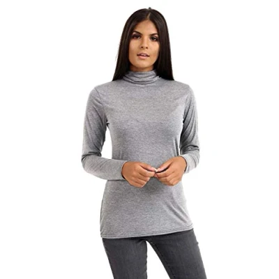 STAR FASHION Womens Polo Neck Jumper Tops Long Sleeve Ladies Roll Turtle Plain Knitted Pullover Sweatshirt for Stretch Lightweight Sweater Top Grey 20 22