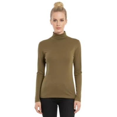 STAR FASHION Womens Polo Neck Jumper Tops Long Sleeve Ladies Roll Turtle Plain Knitted Pullover Sweatshirt for Stretch Lightweight Sweater Top Khaki 16 18