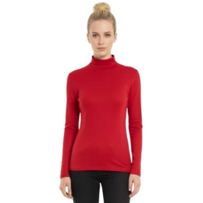 STAR FASHION Womens Polo Neck Jumper Tops Long Sleeve Ladies Roll Turtle Plain Knitted Pullover Sweatshirt for Stretch Lightweight Sweater Top Red 20 22