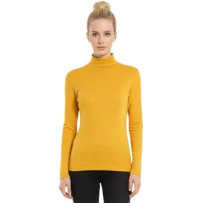 STAR FASHION Womens Polo Neck Jumper Tops Long Sleeve Ladies Roll Turtle Plain Knitted Pullover Sweatshirt for Stretch Lightweight Sweater Top Yellow 20 22