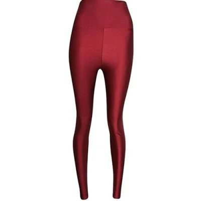 STAR FASHION Womens Shiny American Elasticated Waist Stretchy Disco Leggings Dance Ladies Wet Look Pants Slim Fit Clubwear Tights Partywear PVC Yoga Wine 8 10