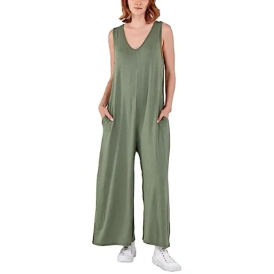 STAR FASHION Womens Sleeveless Plain V neck Jumpsuit Long and Lightweight Comfy for Summer Beach Party Causal Ladies Wide Leg Romper Overalls Khaki