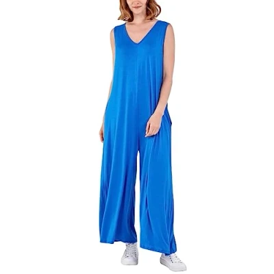 STAR FASHION Womens Sleeveless Plain V neck Jumpsuit Long and Lightweight Comfy for Summer Beach Party Causal Ladies Wide Leg Romper Overalls Royal Blue