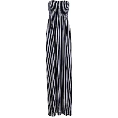 Star Fashon Womens Printed Strapless Shirred Bandeau Shearing Boobtube Long Maxi Dress Black White Stripe 16 18