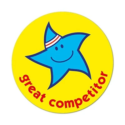 Cute Star stickers with a 'great competitor' Message 75 identical stickers per pack Each sticker measures 38mm in diameter