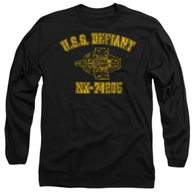Star Trek Defiant Athletic Mens Long Sleeve T Shirt, Black, X Large