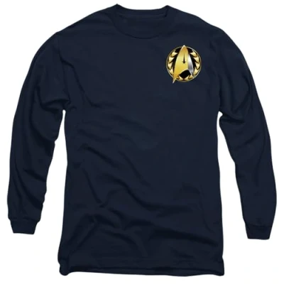 Star Trek: Discovery(Series) Trek Discovery Admiral Badge Mens Long Sleeve T Shirt, Navy, L