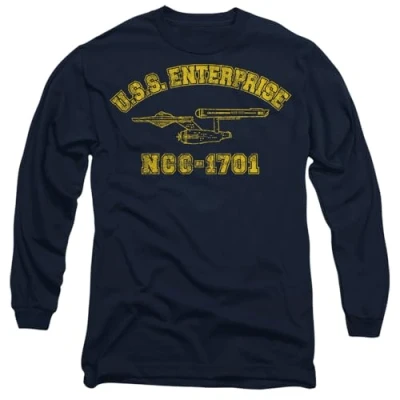 Star Trek Enterprise Athletic Mens Long Sleeve T Shirt, Navy, X Large