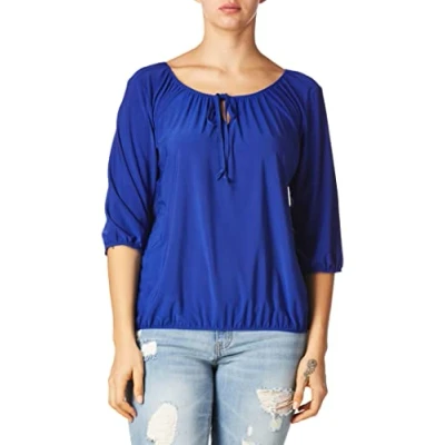 Star Vixen Women's 3/4 Sleeve Peasant Elastic Hem Keyhole Tie Top Blouse, Royal, Large