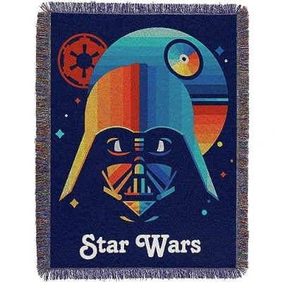 Decorate your bedroom with Star Wars" Moonrise" Woven Tapestry Throw Blanket by The Northwest Company. Features Darth Vader Mask in bold colors ready setting Detailed, woven throw blanket; decorative fringes around all edges; made in America Measures 48"W x 60"L Machine wash cold separately using delicate cycle and mild detergent. Do not bleach. Machine dry separately on gentle cycle. Remove promptly. Do not iron.