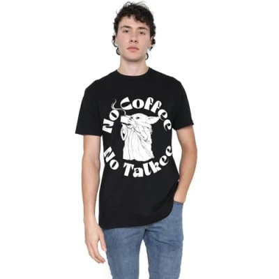 Star Wars Grogu Mandalorian No Coffee Talkie Unisex T Shirt, Black, Small