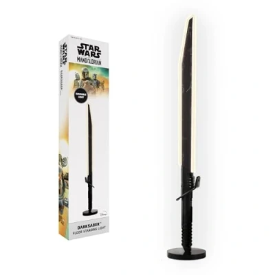 AmazonOversized UK Mains Powered White LED The Mandalorian Darksaber Floor Light with Floor Switch and Remote Official Star Wars The Mandalorian Merchandise Manufactured by UKONICS under License from Disney LucasArts Dimmable Super Bright White LEDs Light Up the Blade Edges of the Famous Mandalorian-Jedi Plasma Sword Includes Inline Floor Button for Easy Power On/Off on 1.8 Metre Long UK Fitted Plugged Adaptor Cable Darksaber Measures Around 122 cm by 20 cm by 20 cm | Requires Some Assembly (Tools Included) | Ages 14+ Powered by UK Mains 220 / 240 V | 50 Hz | Remote Requires 2 x AAA Batteries (Not Included) | This is NOT a TOY