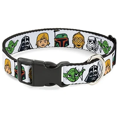 Star Wars Pet Collar, Dog Collar Plastic Buckle, 6 Character Faces White, 9.5 to 13 Inches 1.0 Inch Wide