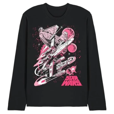 Star Wars: Episode Iv - A New Hope UNISEX LONG SLEEVE T-SHIRT FOR MEN & WOMEN: Crafted from premium ringspun cotton, our long sleeve T-shirts are the epitome of timeless style. Embrace your individuality with a look as distinct as you are. Created for everyday wear, our long sleevetees feature a breathable all-season mid-weight weave, ensuring comfort in a versatile tagless design. Beyond ordinary, this long-sleeve tee is built to last. VERSATILE FIT: Whether you're an icon, influencer, or a myth in the making, discover a facet for every version of yourself. Pre-shrunk for the perfect fit, our long sleeve tees are meant to be worn daily. With a crew neckline, long sleeves, regular silhouette, and straight hemline, this top is designed for comfort. Casual and classic, it's the ideal choice for any occasion. Only good vibes here. OFFICIALLY LICENSED - Discover exeptional style with our officially licensed pop culture designs! Created by our in-house graphic art team, each piece is a proud representation of craftsmanship, meticulously designed and printed in the UK. Showcase your favorite characters and themes, making every wear a statement of your unique style! EFFORTLESS CARE: From school and work to hanging out with mates, our classic tee is tailored for the real world. No complicated care instructions – simply wear, wash, repeat. Launder cold and tumble or hang dry to maintain the longevity of your new favourite shirt. PERFECT GIFTING OPTION: Ideal for sharing the love, our thoughtfully crafted and vividly rendered long sleeve T-shirts are perfect for any superfan. Kit your loved ones out for their next birthday, holiday, themed event, Christmas or special occasion.