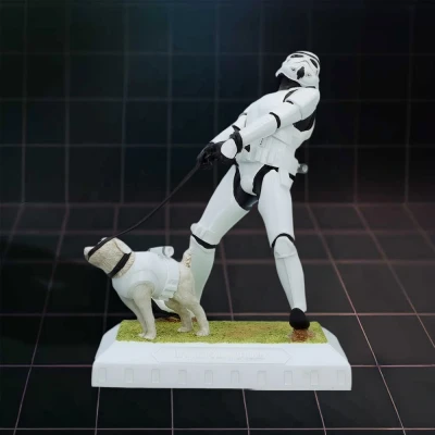 This Star Wars Stormtrooper Man's Best Friend figurine brings a witty twist by pairing the iconic Stormtrooper armour with an endearing dog companion. This playful duo captures a clever moment from the galaxy far, far away, blending a sense of strength with surprising charm. It’s an eye-catching piece that livens up any collection with its dynamic and approachable personality. Made from robust materials, this collectible keeps its sharp detailing intact—from the gleaming armour to the dog's lively stance—ensuring it stands out as a durable display item. Whether positioned among other sci-fi treasures or showcased solo, it injects a dash of cheeky character and fun into your décor. Fans drawn to imaginative and playful Star Wars memorabilia will appreciate its unique appeal. Designed to delight experienced collectors and casual fans alike, this nod to the Stormtrooper’s quirky sidekick offers both nostalgia and a lighthearted touch. A charming conversation piece, it fits seamlessly with modern pop culture collections and keeps its cool factor over time.