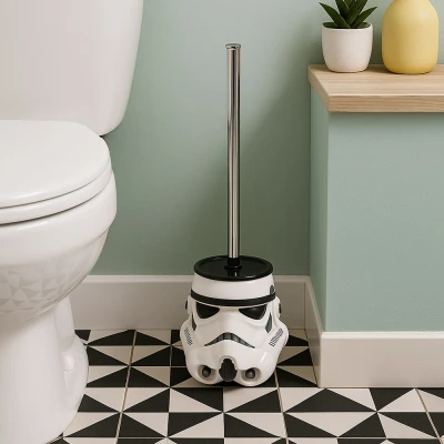 AmazonComposite Toilet Brush with Ceramic Stormtrooper Helmet Shaped Painted Glazed Holder and Plastic Liner Official Original Stormtrooper Merchandise Manufactured by Shepperton Studios Under License from Sedalo GmbH Ltd Holder is Made from Ceramic and PET Plastic (Liner) with the Brush Made of Durable PP and Stainless Steel Makes a Great Gift for Fans of the Star Wars Film Franchise or Those Who Need to Stay on Target Using the Force Brush in Holder Measures Around 37 cm by 13 cm by 13 cm | Brush Handle Length Measures Around 25 cm
