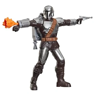 STAR WARS: THE MANDALORIAN & GROGU(TM): The Mandalorian and his young apprentice, Grogu, embark on a thrilling adventure as they travel the galaxy 15-CM STAR WARS(TM) ACTION FIGURE: this 15-cm (6 inch) Mandalorian Star Wars figure features character-inspired design and detail GEAR UP FOR ACTION: squeeze the Mandalorian's legs together to raise his arms and imagine epic battle scenes SOUND EFFECTS (BATTERIES INCLUDED): this Mandalorian figure also features battle sound effects when his legs are squeezed ACTION FIGURE ACCESSORIES: this Star Wars set features flamethrower and blaster accessories moulded into the figure's hands, Manufacturer: Hasbro